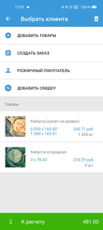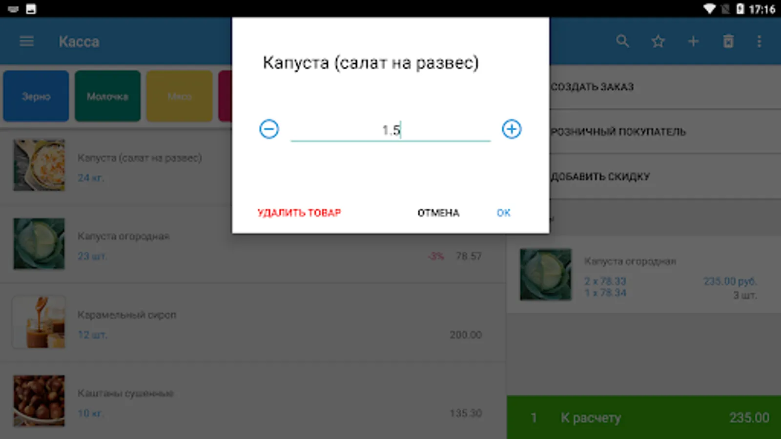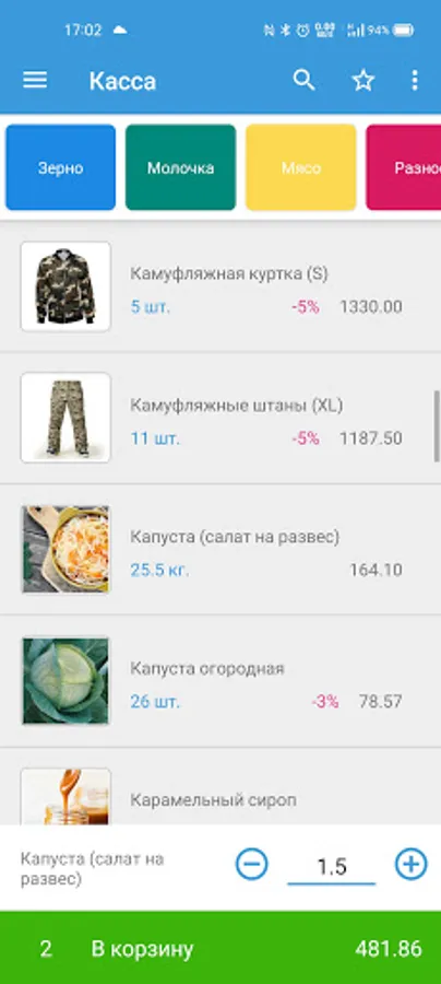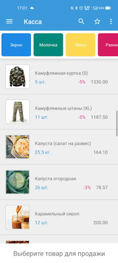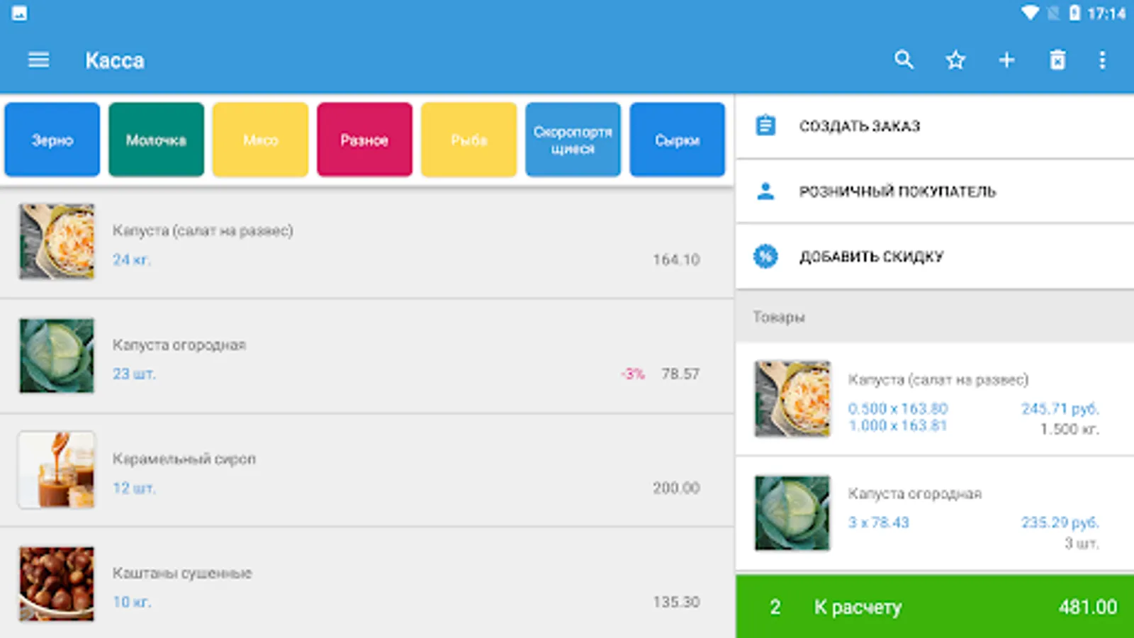 - grocery retail (grocery store, including the sale of alcohol (EGAIS), stalls and others)