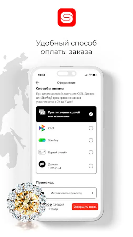 - booking jewelry and watches for subsequent fitting and purchase in SUNLIGHT jewelry stores