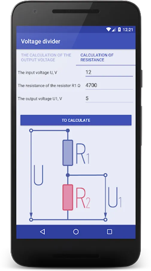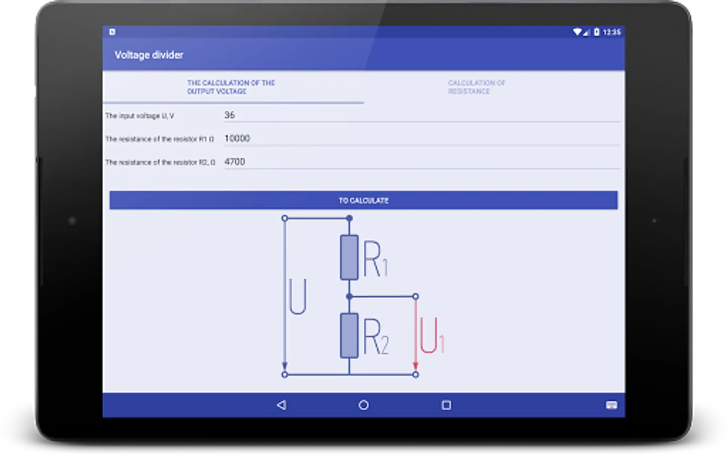- calculation of the output voltage, the specified values of the input voltage and resistance;