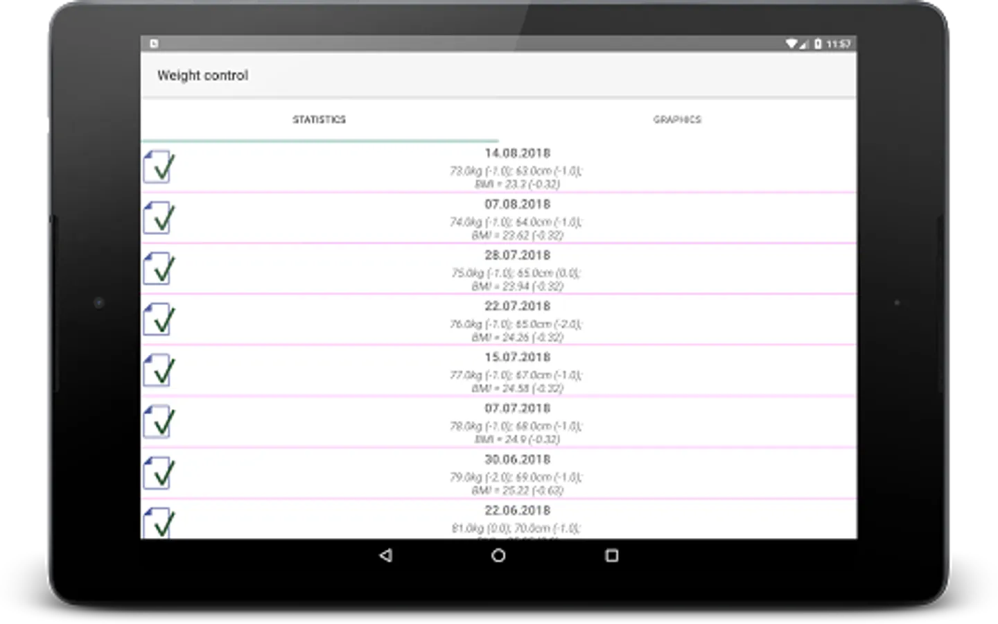 If you're watching your weight or want to lose weight or improve your health, You need to regularly measure your weight. The program will help you to store data in a convenient and understandable form. Based on the personal data of Your body, the program will calculate an important health indicators such as Body Mass Index (BMI), progress changes in weight and waist.