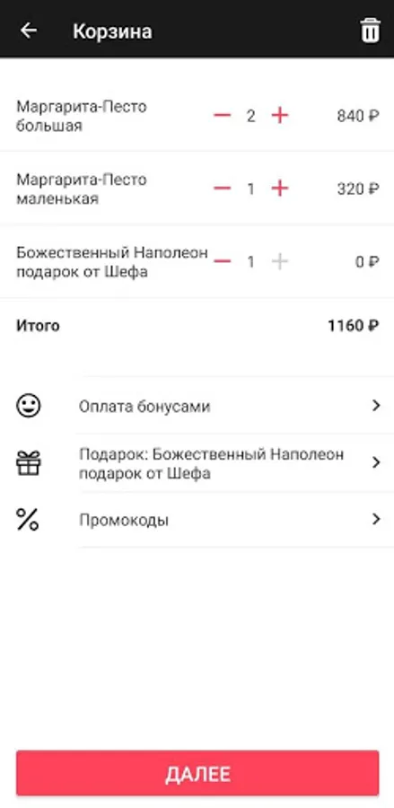 • Promotions and promotional codes in the application
