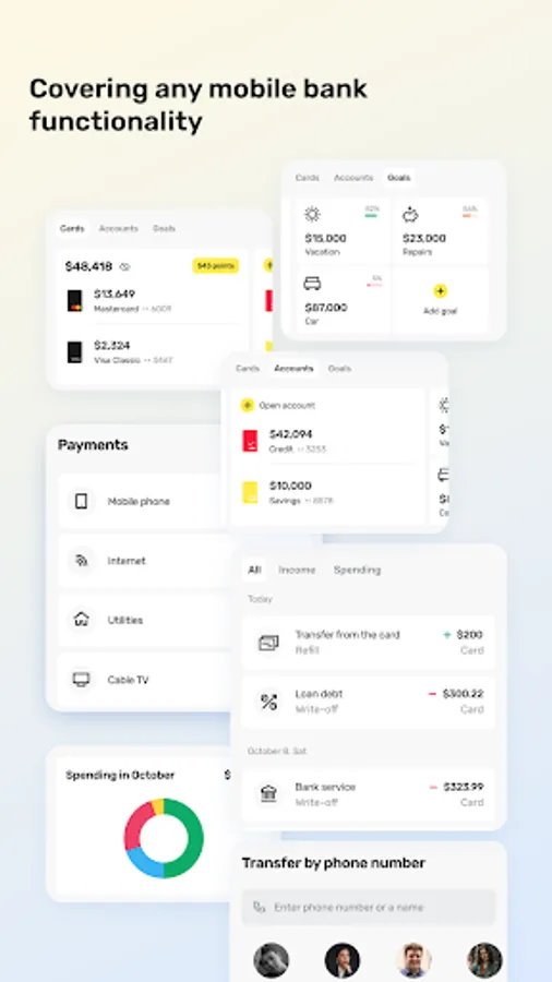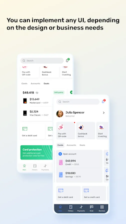 Flutter-based application can offer all the typical functions of a mobile banking app. In the concept, you can see a visual prototype demonstrating the most popular features. Tap those you are interested in and test how it works.