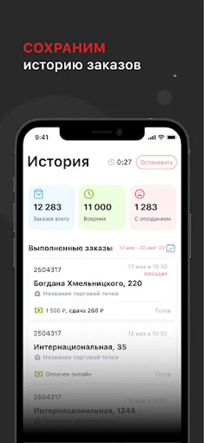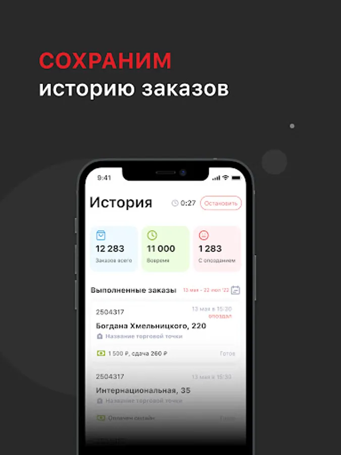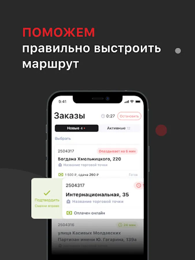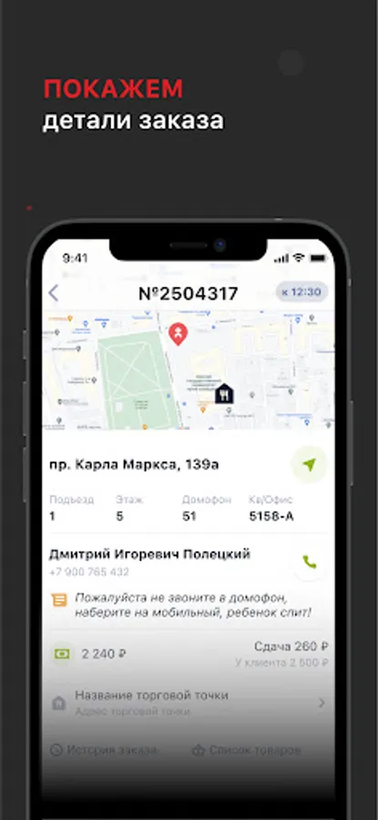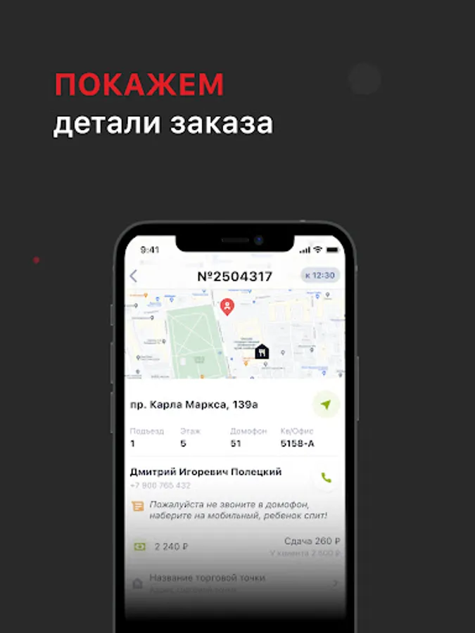 Program for working as a courier in the Sushi Market company.