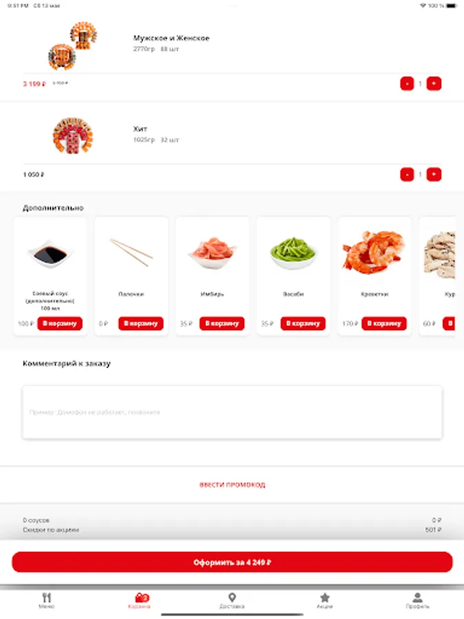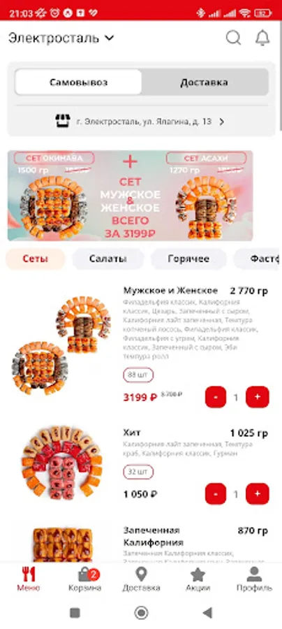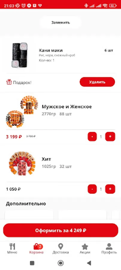 Make purchases of your favorite dishes in the Sushi Roll app.