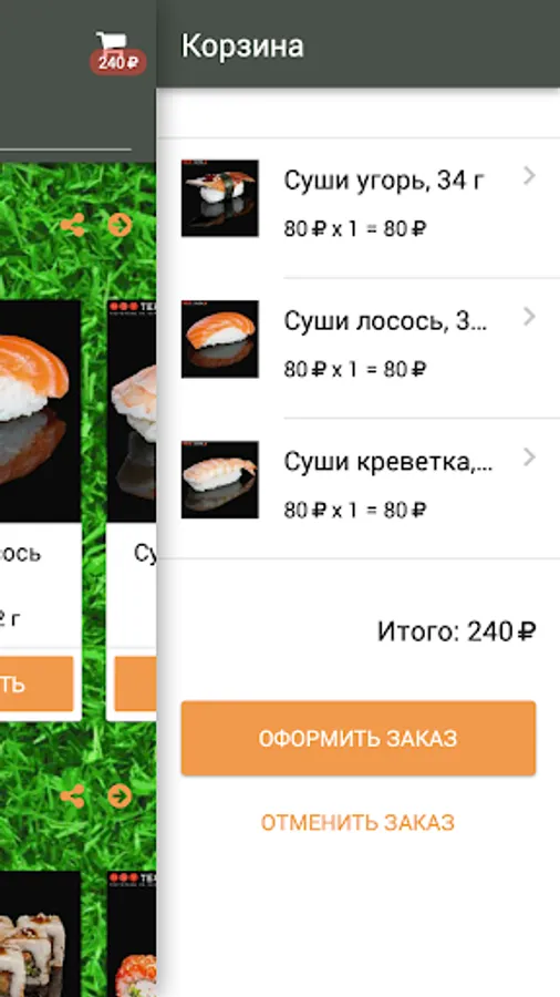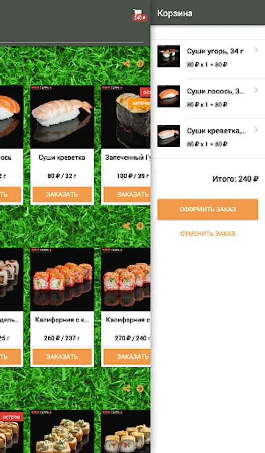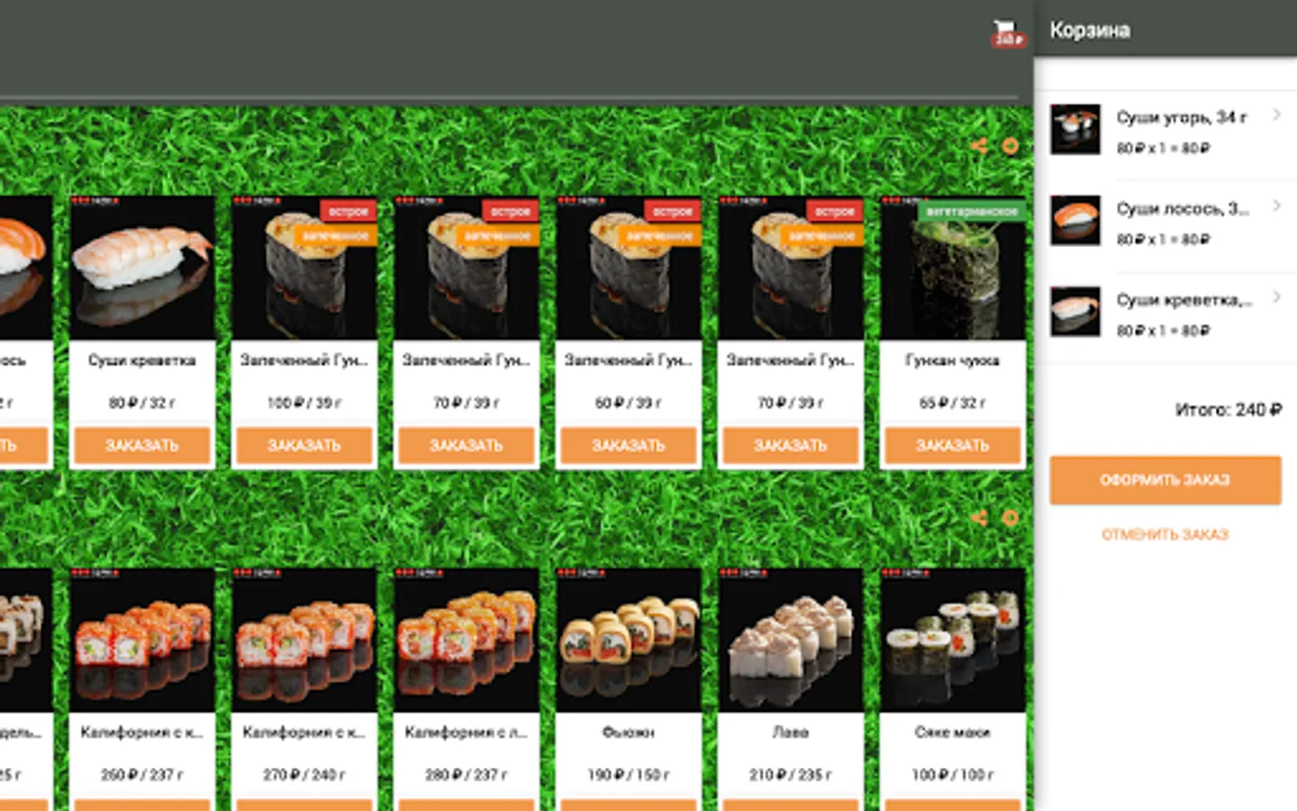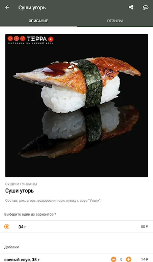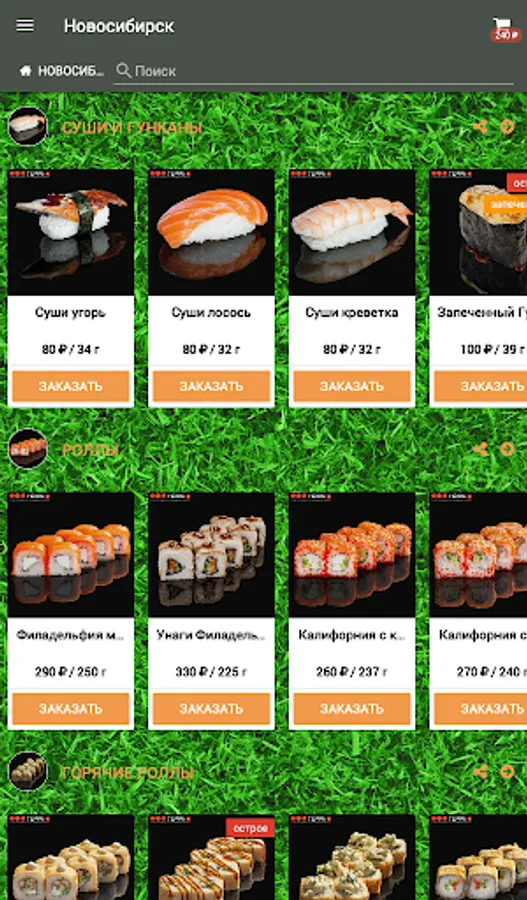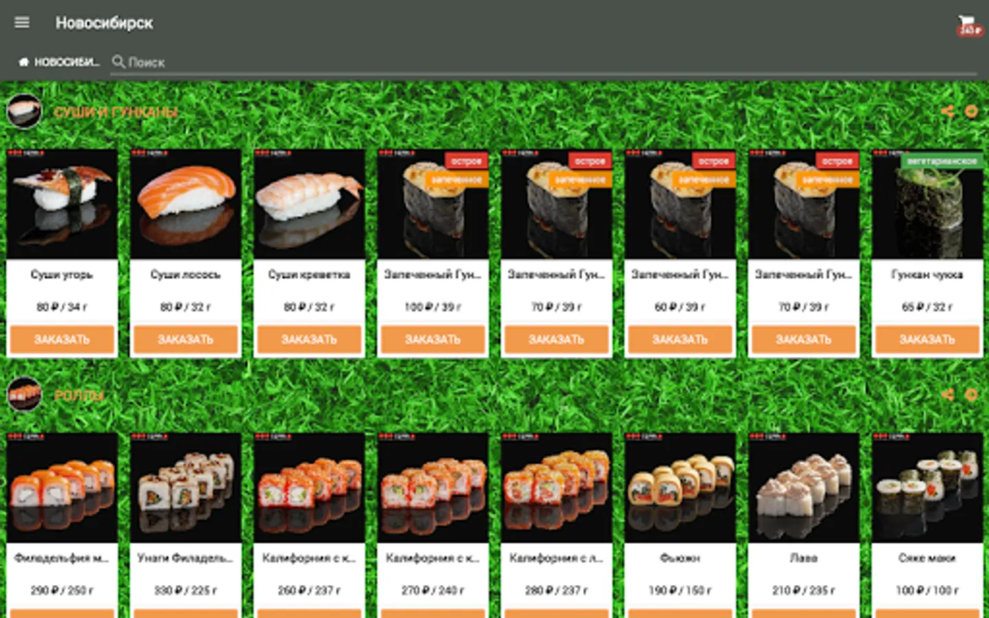 Application for ordering rolls, sushi, pizza, pasta, wok, salads, soups and other dishes in the network of restaurants "Terra" in the cities of Novosibirsk, Omsk, Kemerovo, Krasnoyarsk, Surgut, Novokuznetsk, Taiga.