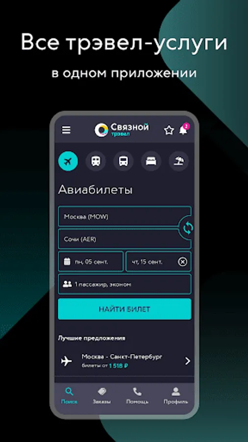 Svyaznoy Travel will help you quickly find and buy the cheapest air tickets (Aeroflot, KLM, S7 Airlines, UTair, etc.). Travel is just one click away.