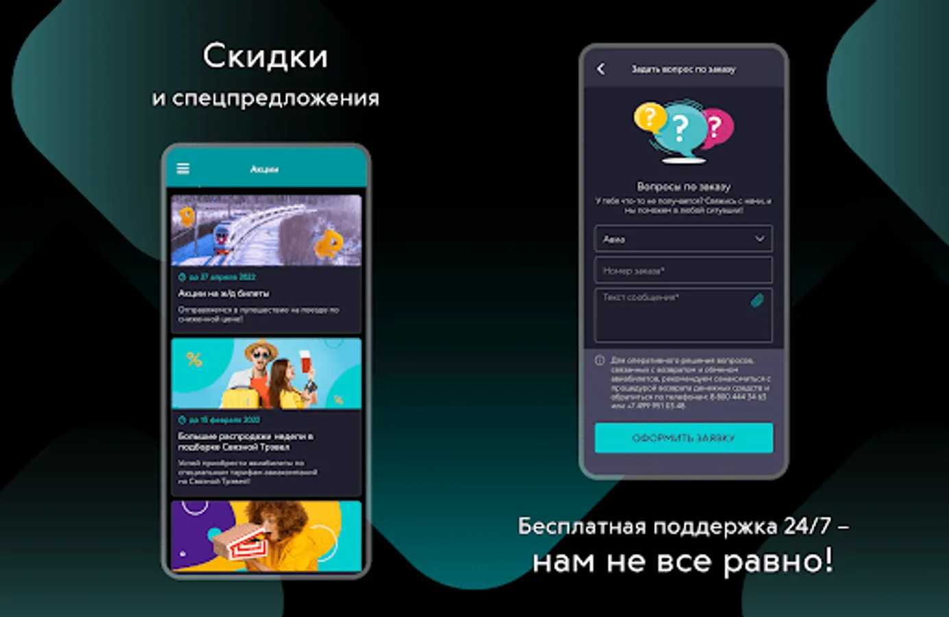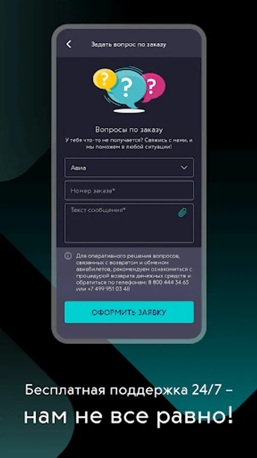 • "Hotline": our specialists will help you quickly make an exchange or refund of air tickets and solve other issues in the built-in chat (on Android 4.4 and higher).