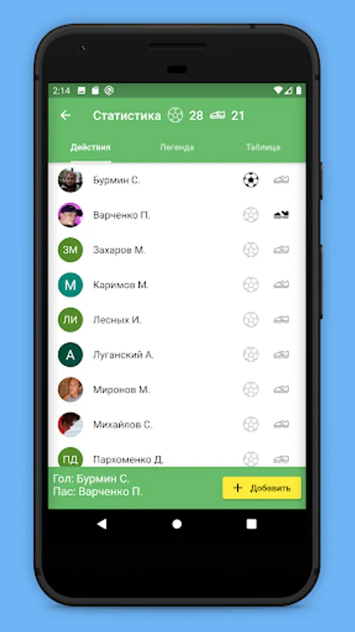 Swarman is a football manager that allows you to manage joint training sessions, control the list of participants and payers, and keep statistics of passes and assists.