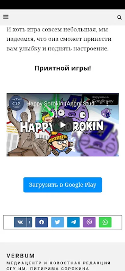 Mobile application of the web portal of the Verbum Youth Media Center of the Syktyvkar State University. Pitirim Sorokin. Read the news, flip through the online magazine, watch videos, play interactive games! All this and much more awaits you on our Verbum portal.
