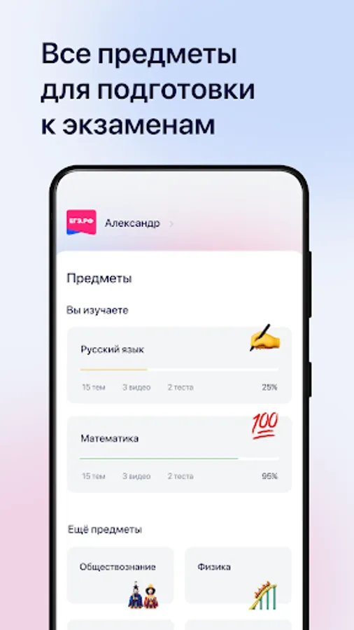 Do you think that preparing for the exam is difficult and boring? The EGE.rf application will help prepare for exams in mathematics, the Russian language and social studies with the help of vivid animated videos. Learn and memorize even the most complex topics with simple images and associations!