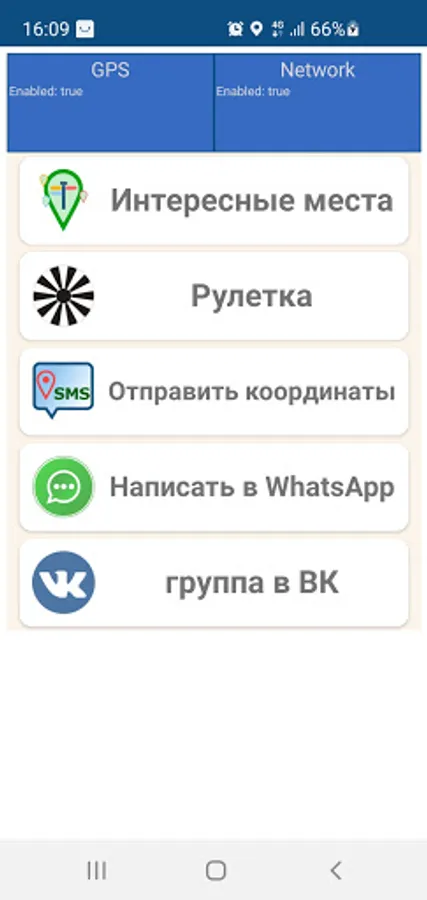 And there are also several convenient functions, for example - "Roulette", which will offer you directions, or sending your own coordinates in order to send your location to friends.