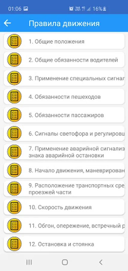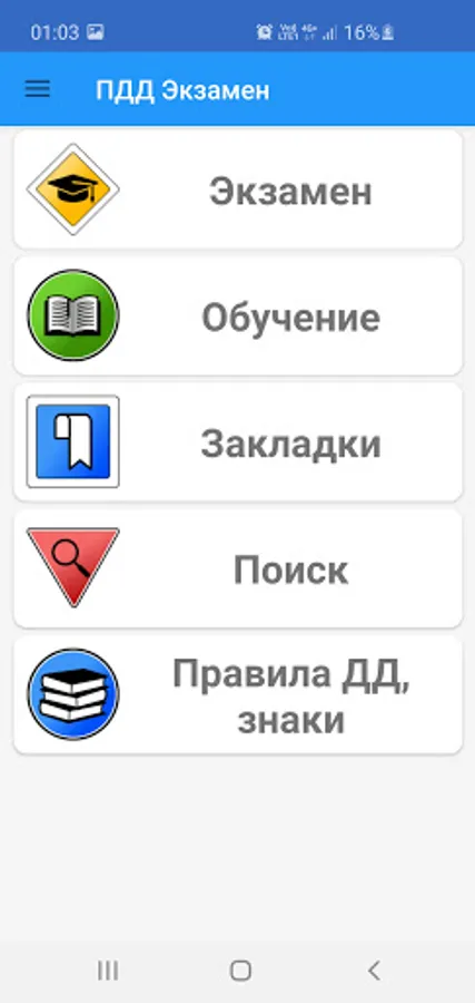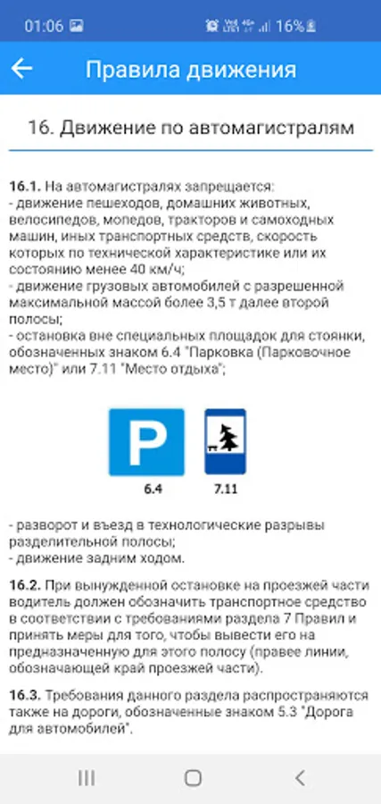 - A section with reference information containing traffic rules, road signs with their detailed description and comments, road markings and other useful information