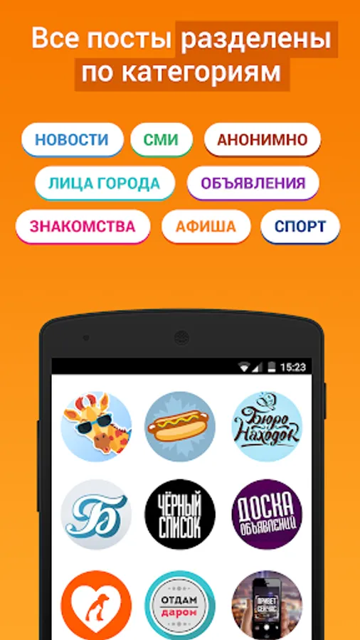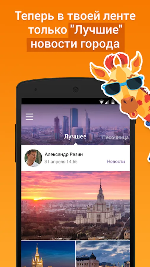 We collect information from city publics VKontakte, sort by categories and filter to show you only the most interesting in the "Best" section.