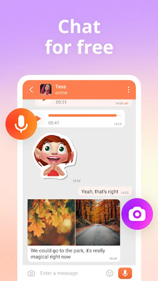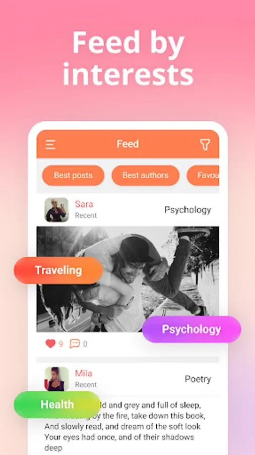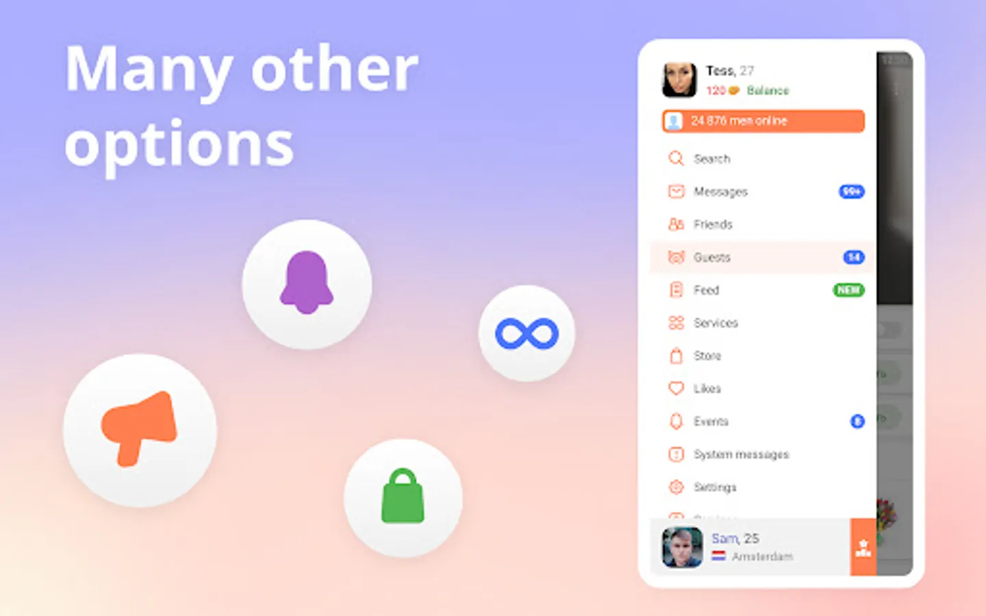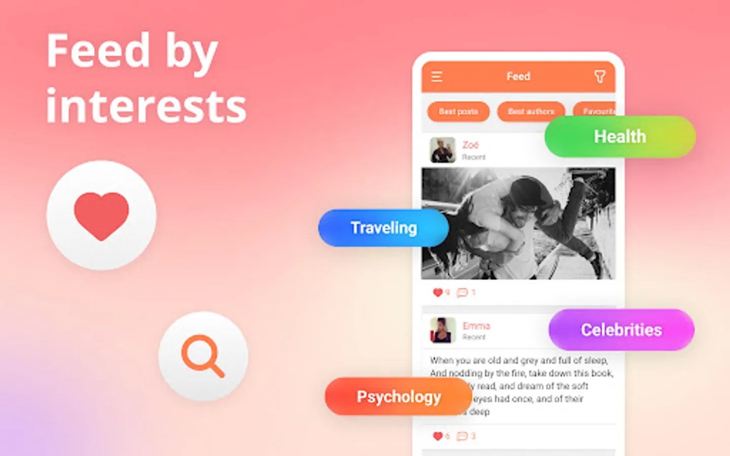 Write to lovely people, get likes, post photos and comments: interesting dating and communication are around you! Expect people to visit your profile, invite people who live nearby and are open to new experiences, keep an eye on your feed and enjoy other free features of our app.