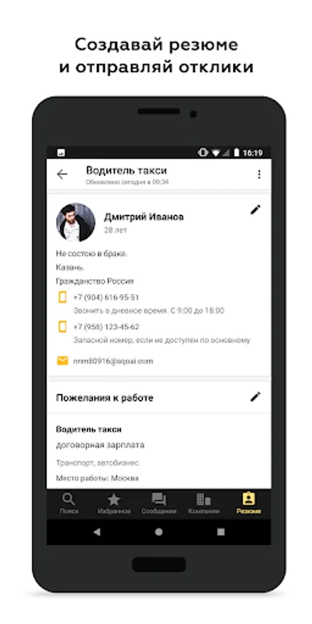 - Write - ask an HR-specialist a question through the button in the vacancy card, or use email or other communication methods, for example Skype.