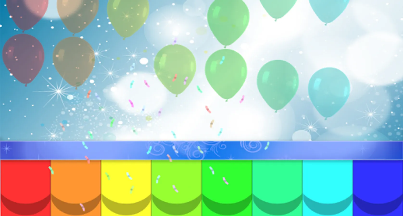 When you press a key on virtual piano on the board appear colored balloons that can be popping by touching them with your finger, and then enjoy the strings of the falling of them confetti.