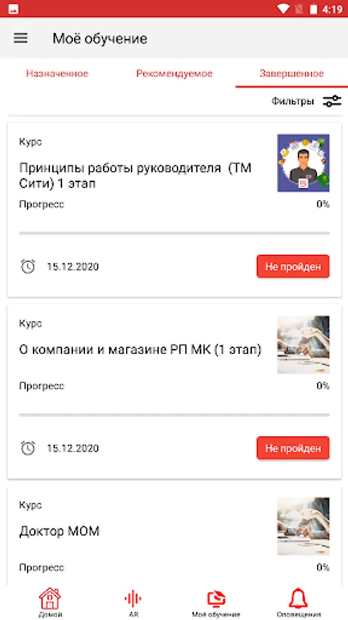 The application has a simple interface. Learners can easily find a reference guide, assigned courses and assignments.