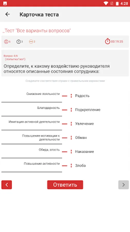 Keeping track of your progress is easy. Complete tasks and pass tests - the result will show what needs to be repeated.