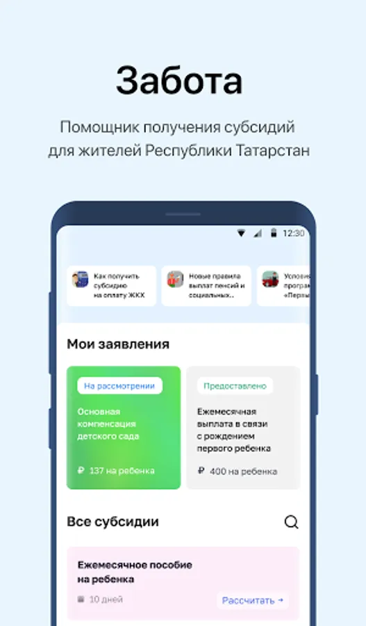 "Care" is a super service for the residents of the Republic of Tatarstan, which will tell you what subsidies are due to a citizen and help you fill out applications.