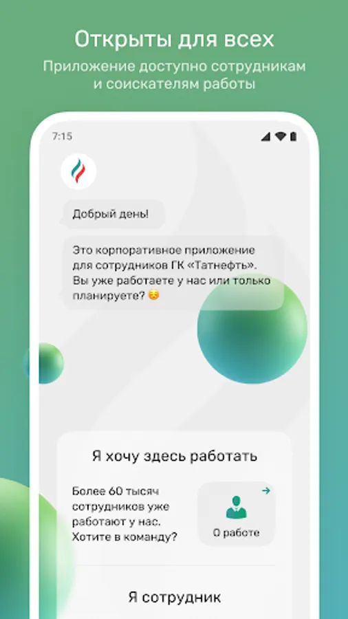 An application for employees of Tatneft Group of Companies, as well as for those who have long wanted to join the team of one of the largest Russian oil companies.