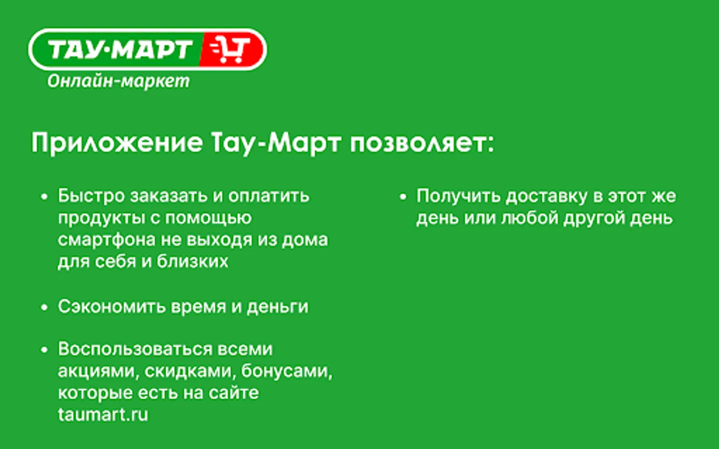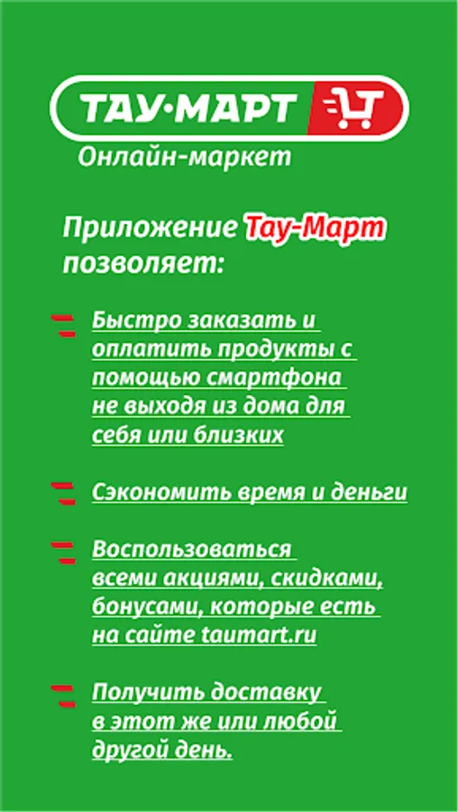 - register in the KOMOS PLUS loyalty program and receive bonuses for purchases, individual offers and gifts. For downloading the mobile application "Tau-Mart" you get 300 welcome bonuses;
