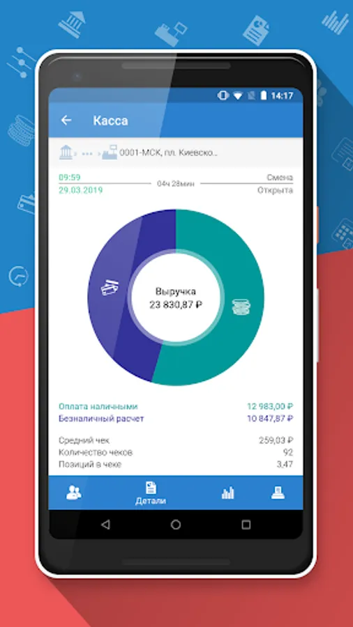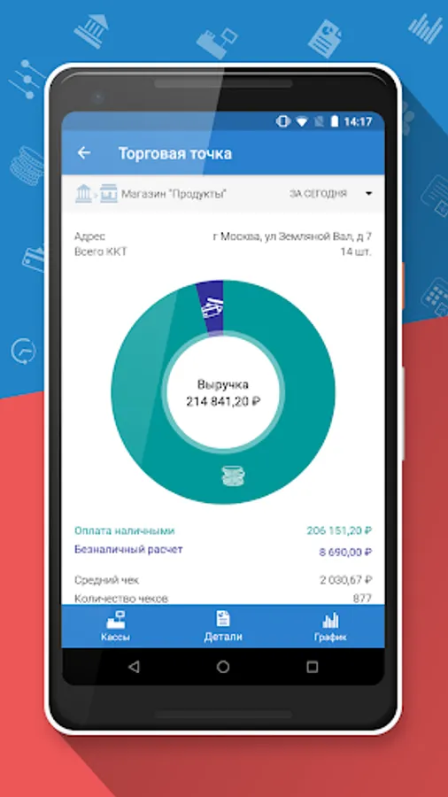 The mobile application allows the subscriber to the CRF "Taxcom" quickly receive relevant information on the organization of outlets, real-time monitor the CCP and get online key performance indicators of public and private shifts.