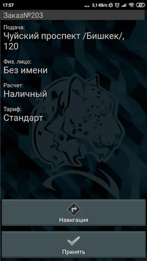 The application is designed for the employees of Bars taxi, working in the city of Bishkek, Kyrgyzstan. It allows the taxi driver to process orders using a conventional Android device instead of a specialized navigator. The program uses GPS to navigate and calculate the distance of the trip.