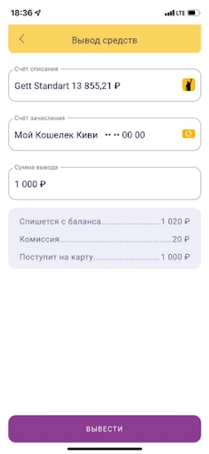 The service allows you to receive funds from the balances of aggregators within 30 seconds: Yandex.Taxi, Citymobil and Gett (Gett).