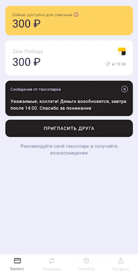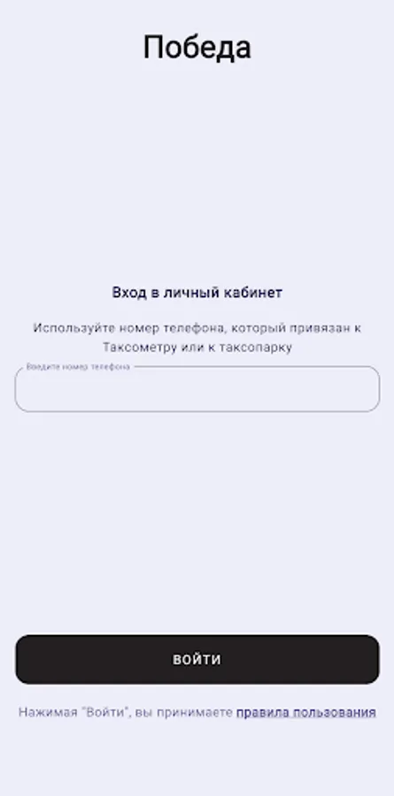 Mobile application of the Pobeda taxi fleet, which allows you to make instant payments for taxi drivers.