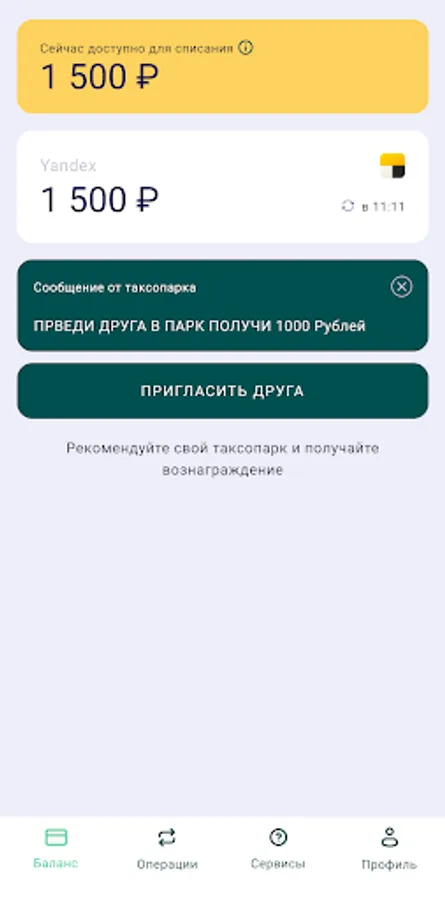 The application allows you to receive funds from the balances of aggregators within 30 seconds: Yandex.Taxi, Citymobil and Dostavista.