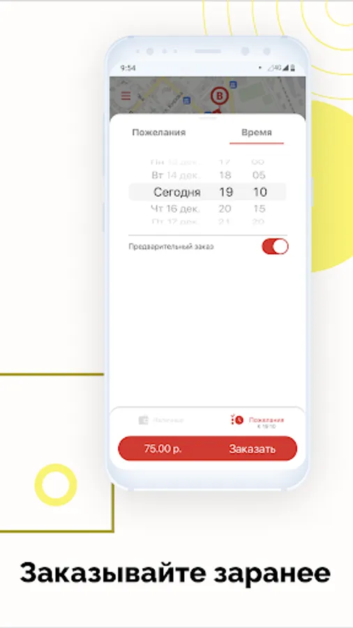 • Autodetection of geolocation - allows you to call a taxi even if you are in an unfamiliar part of the city.