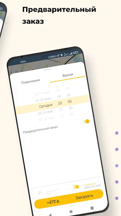 Need a car by a specific time and date? Order it in advance through the application, and at the appointed time, a taxi will be waiting for you at the entrance.