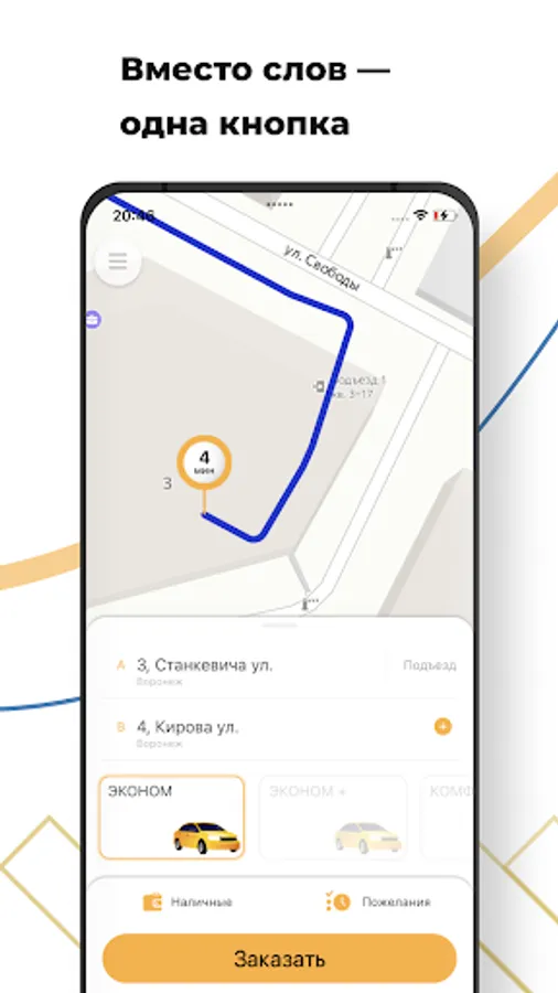 Use a simple and convenient way to order a taxi in the cities of Voronezh, Usman, Novaya Usman, Liski, Ostrogozhsk, Rossosh. With a mobile application - MODtaxi is always at hand.