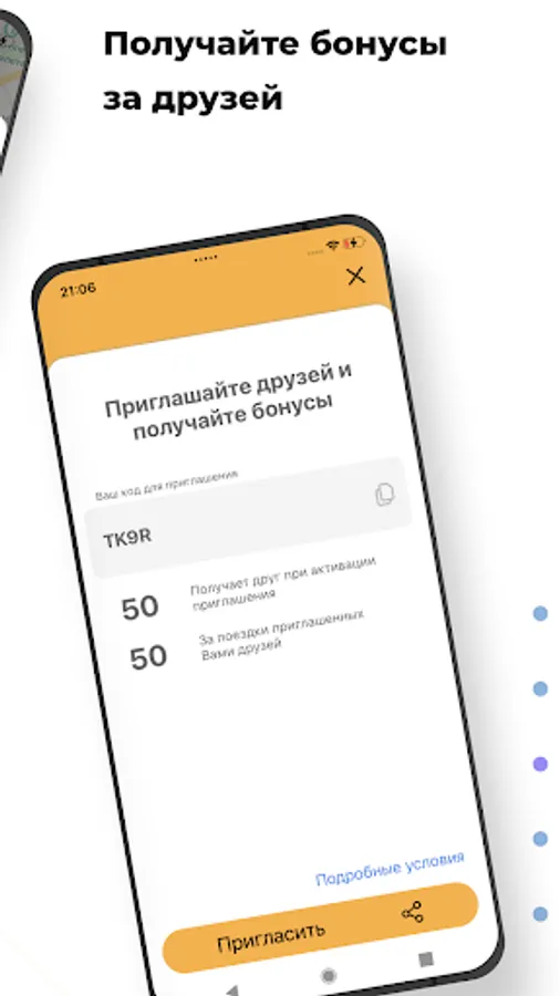 Invite friends with a referral code and get bonuses for their trips. Use bonuses to pay for MODtaxi taxis.