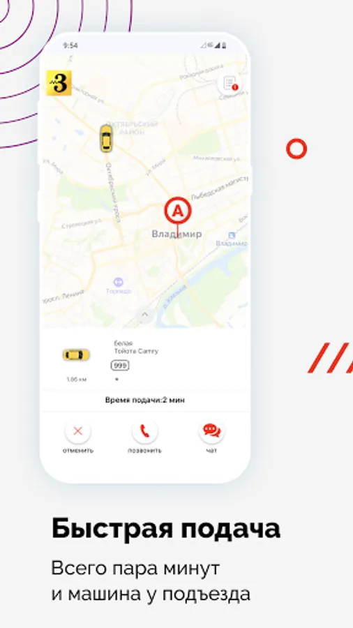 With the application Vladimirskaya Troika 35-35-35 you can call a car at any time convenient for you. Booking a taxi has never been so easy!