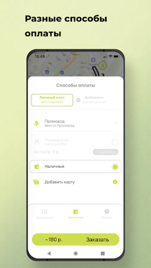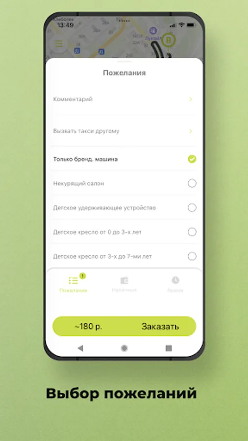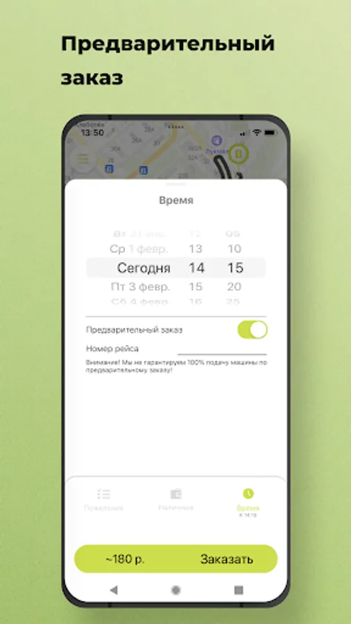 Select the "Pre-order" option. The car search will start shortly before the trip order, and the car will arrive at the appointed time. Also, you will know in advance the cost of the trip.