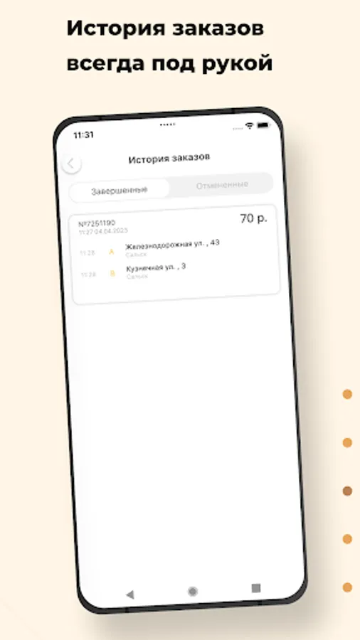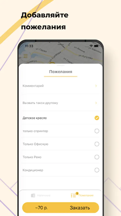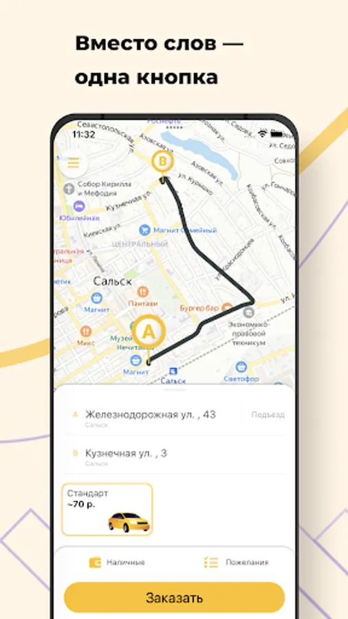 The delivery address will be determined automatically. You just need to indicate where you are going. Use templates with addresses and settings that you use most often to order a taxi in a couple of clicks.