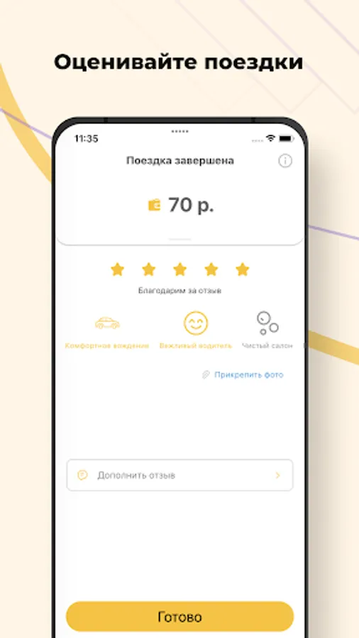 Rate the driver, write a review, or select a reaction from ready-made templates. Attach a photo to your review.