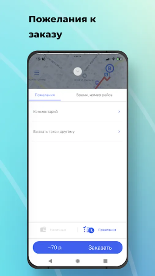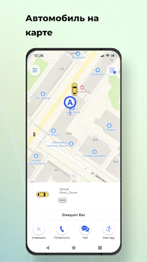 Use the option “Call a taxi for someone else” in the “Wishes” section and indicate his phone number. When the taxi arrives, an SMS will be sent to the specified number, and you will receive a message in the application.