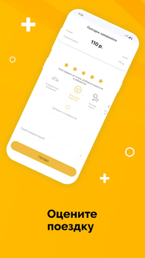Rate trips and leave your comments directly in the app to improve the quality of service. You can block the driver or add to favorites.