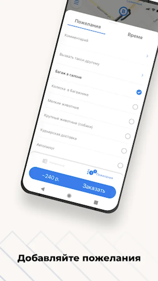 Add wishes to the order, write a comment to the driver, speed up the search for a car.