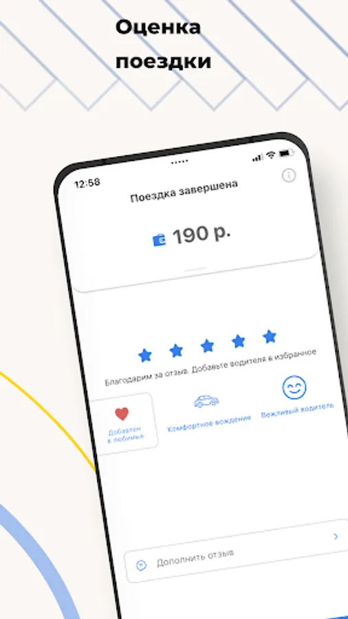 Rate your trip with ready-made templates. Add the driver to "Favorites" if you liked the trip.
