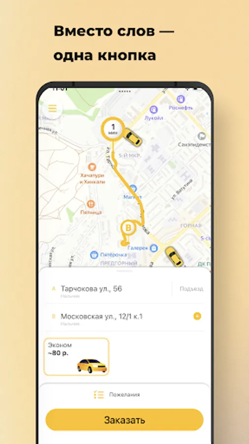 Book a car in PRIDE service in Nalchik, Prokhladny, Baksan, Maisky, Nartkala, Terek through the application. It's 3 times faster than by phone! Between the desire to get to the right place and the search for a car - a couple of seconds.