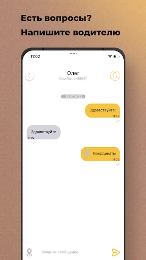 Use the option “Call a taxi for someone else” in the “Wishes” section and indicate his phone number. When the taxi arrives, an SMS will be sent to the specified number, and you will receive a message in the application.