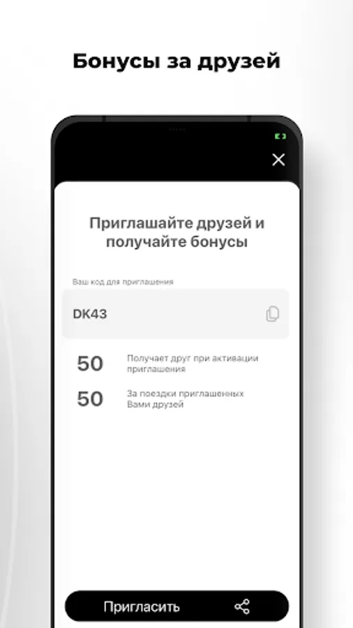 🚩 Especially for the users of our application, there is a profitable promotion "Invite a friend". At the end of each trip, you are given a unique code that you can send to your friend and get +50 rubles. to the bonus account of both.
