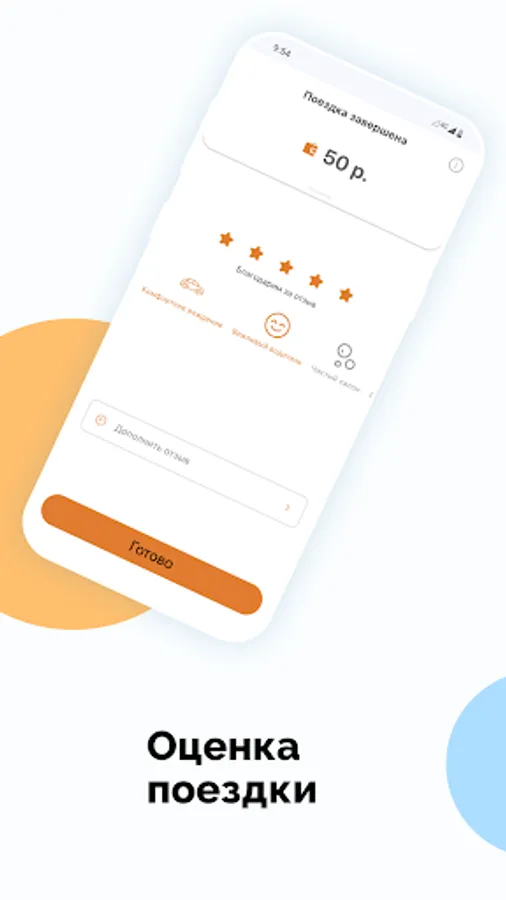 Give 5 stars to the driver, choose one or several ready-made templates for rating, or leave your comment about the application.