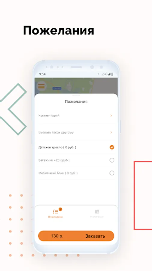 Use auto-selection or manually select the car you want to ride on Taxi Comfort . You can also indicate the necessary wishes before ordering.