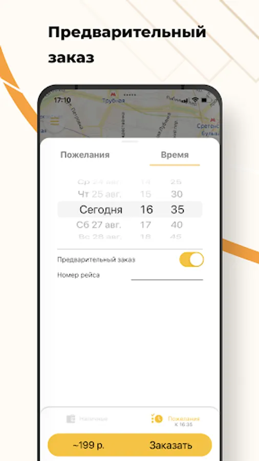 📱 Follow your trip on the map. The application will report the pickup time, brand, color, car number, as well as the name of the driver.