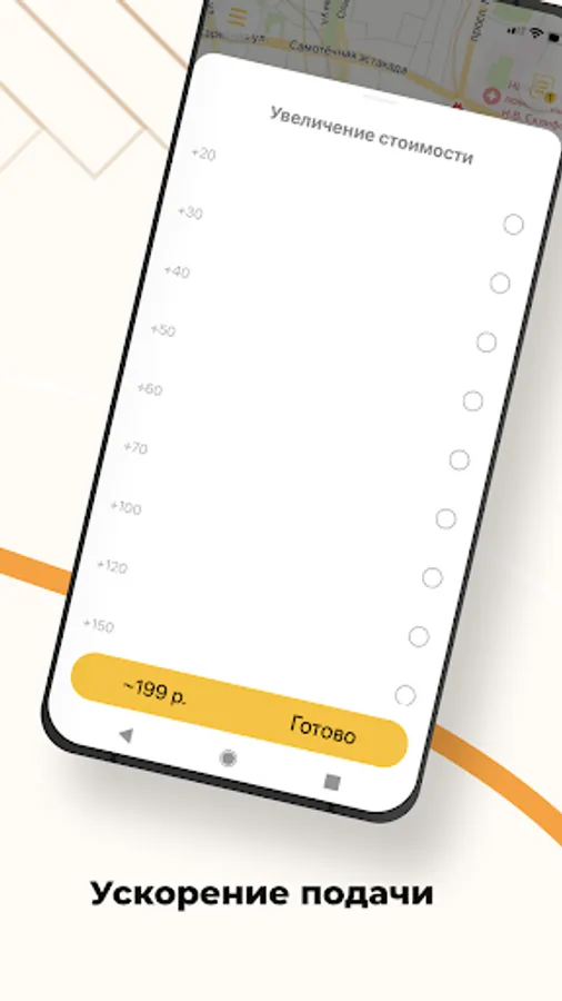 🚕 Reduce waiting time by increasing the cost of your order. So the driver will pick up your order faster. Useful if there is no time to wait even one extra minute.