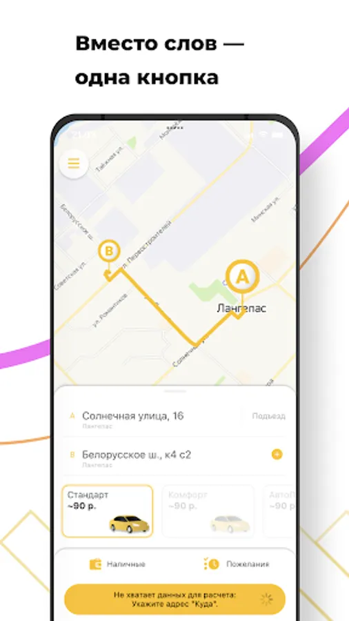Are you planning to visit several addresses in one trip? Specify them in the application by clicking on the “+” on the main screen. This is convenient when you need to pick up friends along the way to go to the movies, or pick up an order at a pickup point.